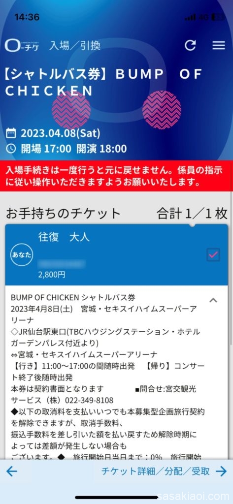- ローチケでのバス乗車券は、前日までの発売