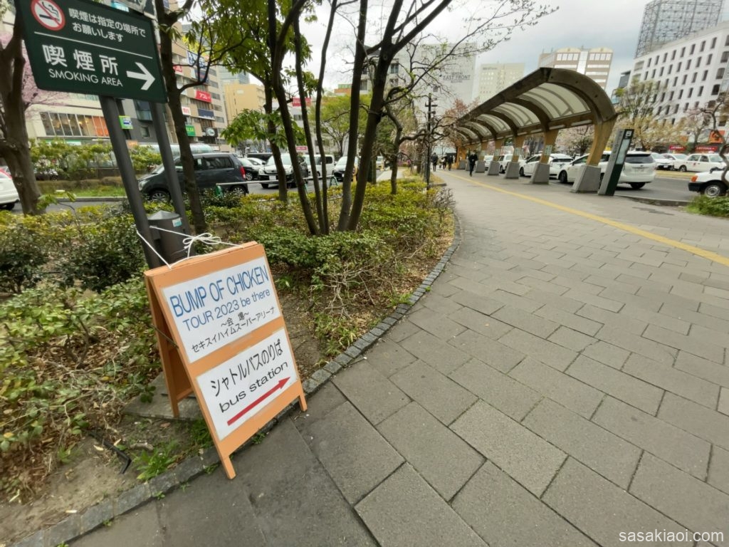 シャトルバスの乗り場は、仙台駅東口から徒歩3分程度の場所に設けられています。