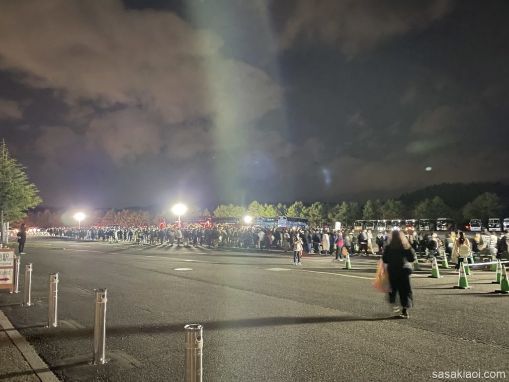 帰りのシャトルバスは、終演直後が1番の混雑となり、30分以上の待ち時間が発生している様子でした。終演後すぐにバスに乗るのではなく、30分程度時間を置くと混雑も落ち着いた様子でした。