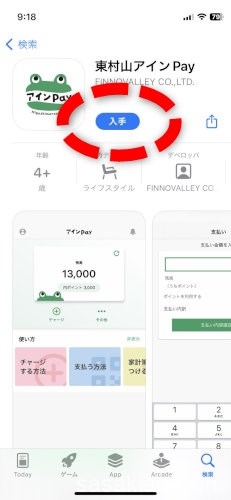 まずは、↑上記リンクをタップして、アインペイアプリをダウンロードします。