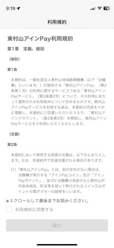 東村山アインPayは、こちらの規約に同意することで利用が可能となります。