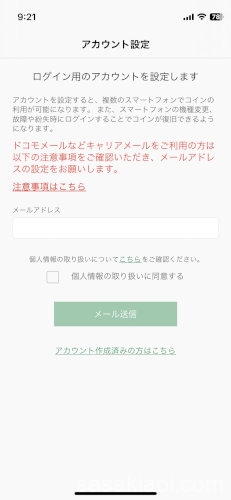 この画面で入力したメールアドレスに、ログイン用の情報が届くので、スマホから確認できるメールアドレスを利用しましょう。