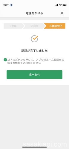 電話がつながると、10秒ほどの機会音声で「認証が完了しました」と流れ、自動的に終話します。