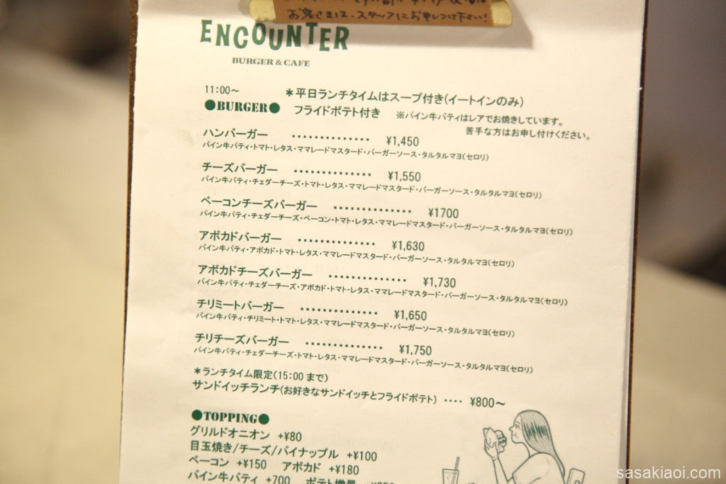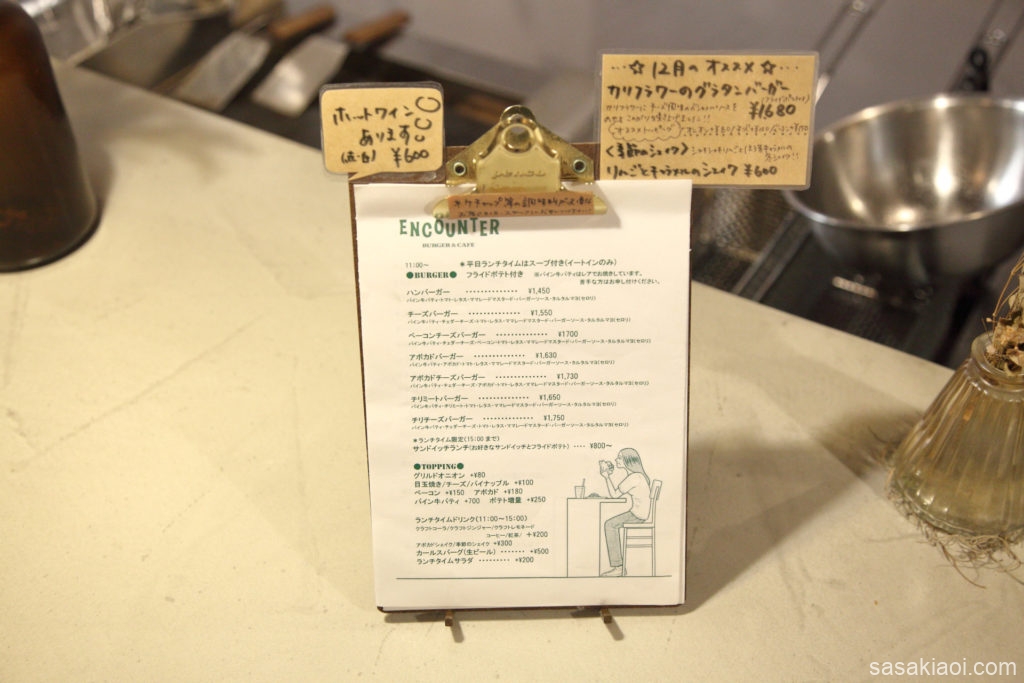 お酒が飲めるハンバーガー屋さん、ENCOUNTERさんのレギュラーメニューを紹介します。