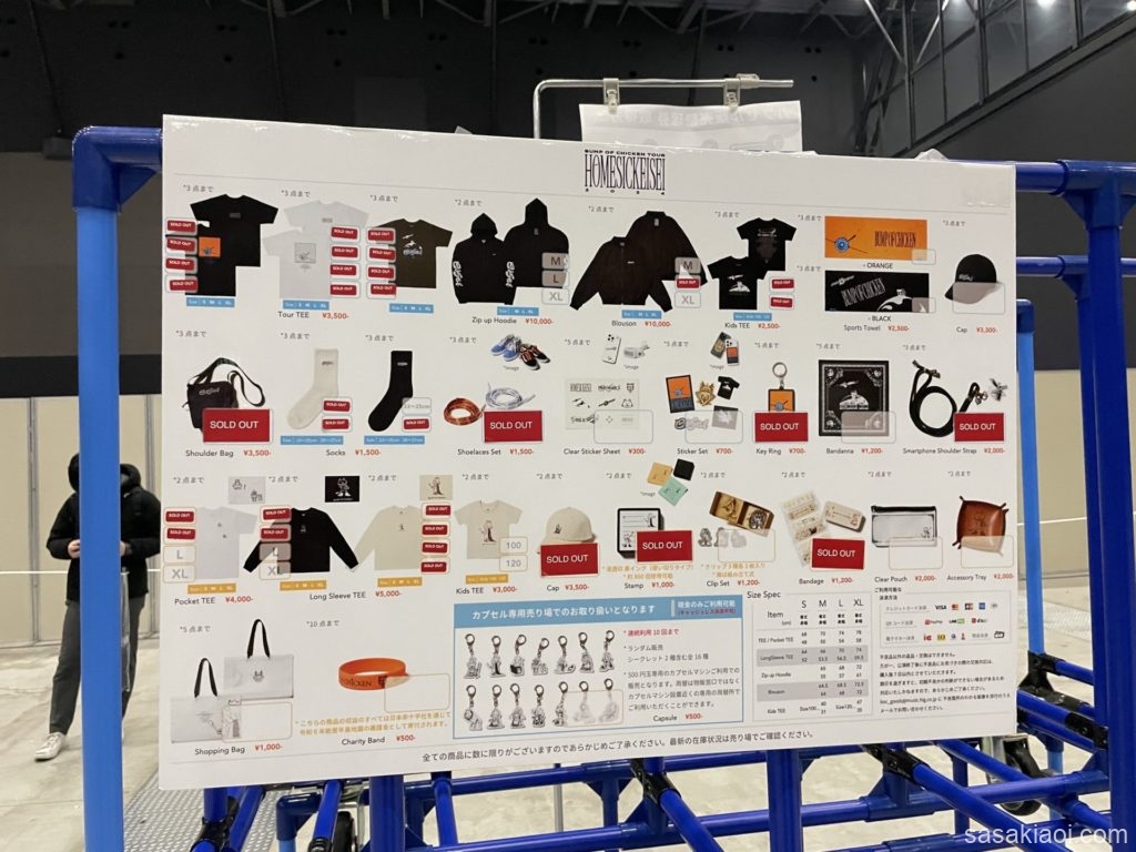 • 物販はツアーTシャツの売り切れが目立った